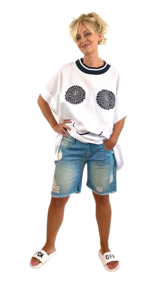 Our ‘Luna’ top is a fluid, boxy oversized tee, longer at the back with wide hems to compliment this style.