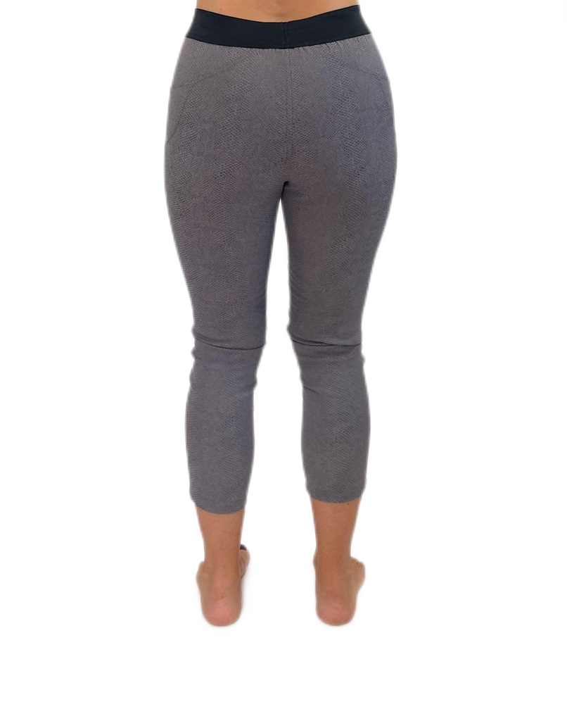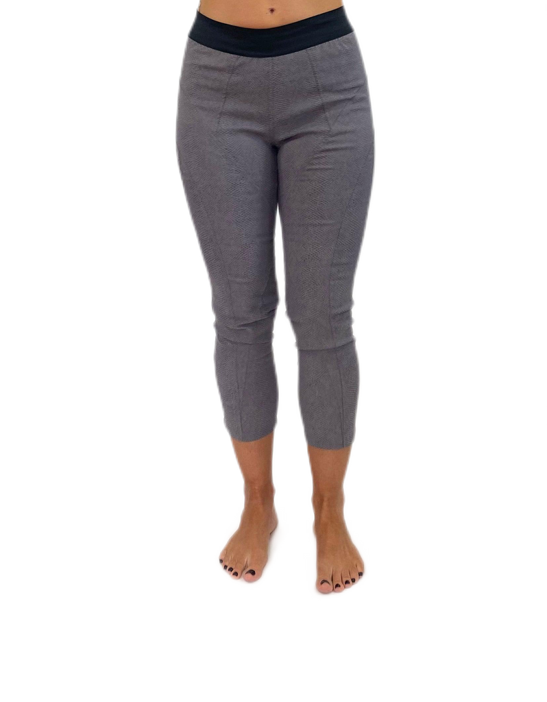 3/4 length seamed pant, elastic waist, made for comfort.
